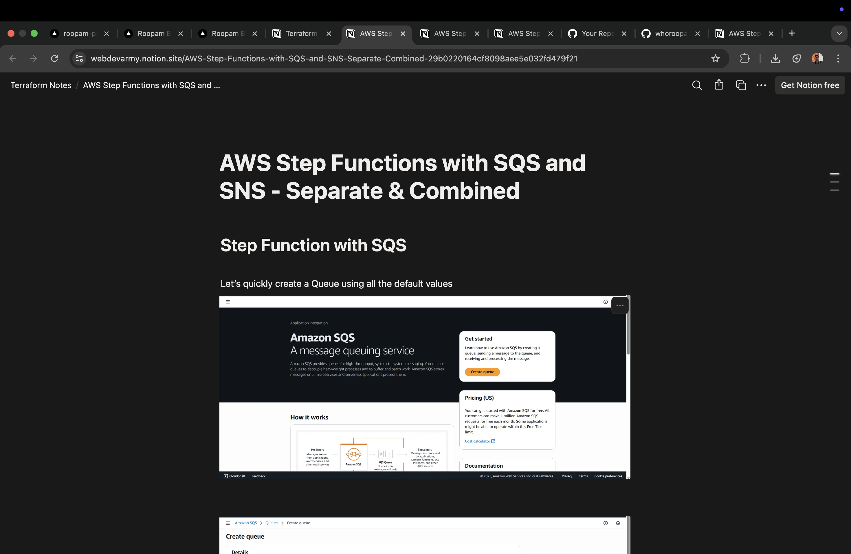 AWS Step Functions with SQS and SNS - Separate & Combined.