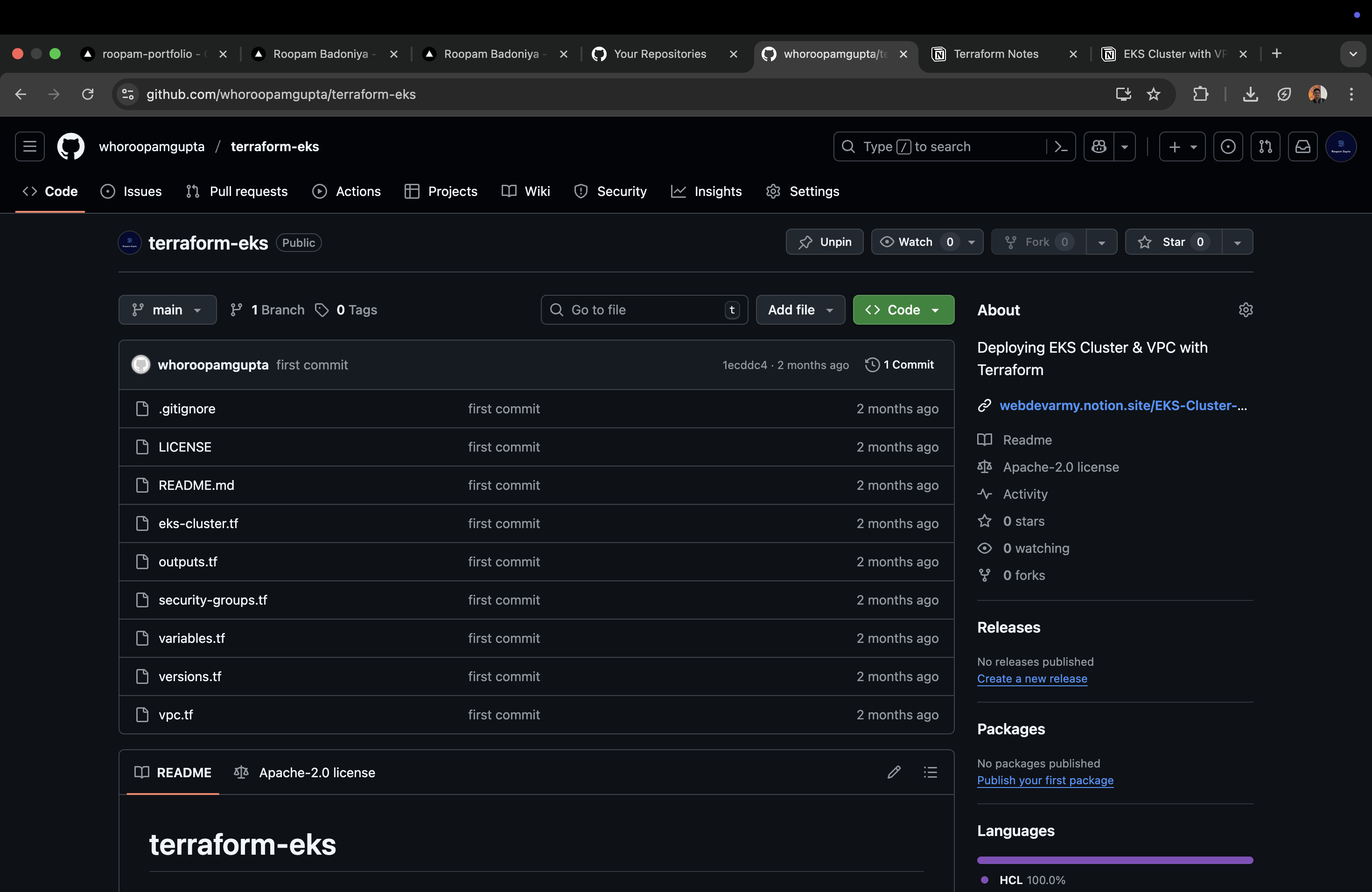 I created an EKS Cluster (worker nodes setup using autoscaling) along with VPC configuration using Terraform